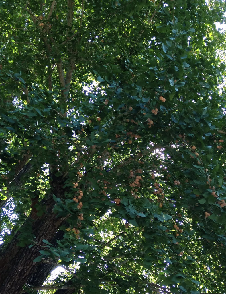 イチョウの木に銀杏がたくさんなっていて。
